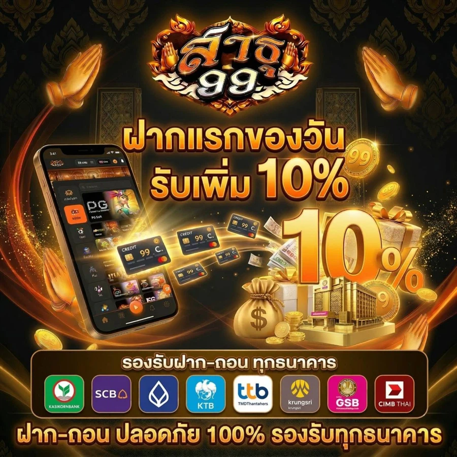 ถ้าคุณกำลังมองหาเว็บพนันออนไลน์ที่มอบโปรโมชั่นสุดคุ้มค่าตลอดทั้งปี 2024 สาธุ99 คือคำตอบที่ใช่สำหรับคุณ เราภูมิใจนำเสนอข้อเสนอสุดพิเศษมากมายที่จะทำให้ประสบการณ์การเดิมพันของคุณคุ้มค่ายิ่งขึ้น เริ่มต้นด้วยโบนัสต้อนรับสมาชิกใหม่สุดพิเศษ 100% สูงสุดถึง 10,000 บาท เพียงแค่สมัครสมาชิกและทำการฝากเงินครั้งแรก คุณก็จะได้รับเงินโบนัสทันที